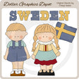 Esta colección incluye un niño sueco, una niña sueca, una bandera sueca y un gráfico con la palabra "Suecia". Este conjunto contiene 4 gráficos.