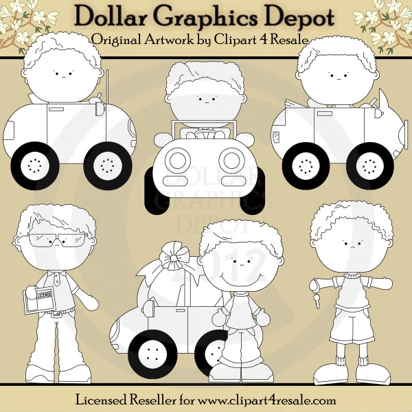 Questa collezione include tre ragazzi che guidano auto decappottabili, un ragazzo con la sua nuova patente di guida, un ragazzo con le chiavi della sua nuova macchina e un ragazzo in piedi accanto alla sua nuova macchina, con un grande fiocco avvolto attorno. Questo set contiene 6 timbri digitali.