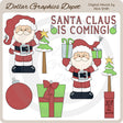 Questa collezione include Babbo Natale con albero di Natale, Babbo Natale con regali di Natale, una lampadina di Natale rossa, un regalo di Natale incartato con un grazioso fiocco, un albero di Natale con base "Joy To The World" e uno "Santa Claus Is Coming" grafica di parole artistiche. Questo set contiene 6 grafici.