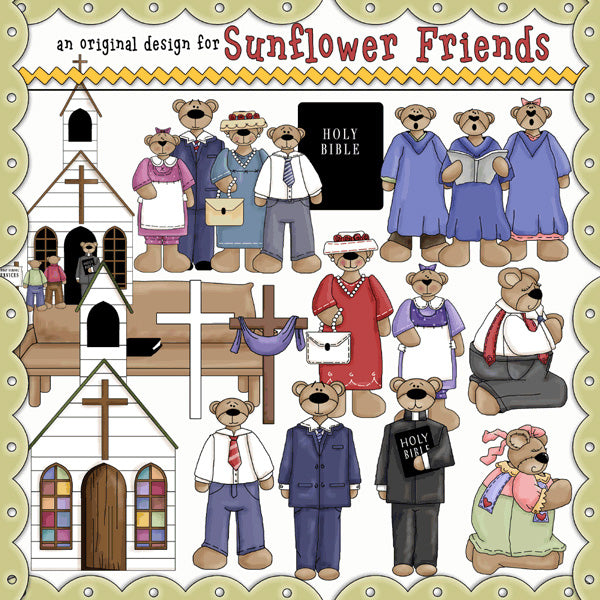 Cute Church Bear è una collezione esclusiva disegnata da Alice Smith di Whimsy Primsy che sarà disponibile solo su Sunflower Friends!!