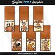 Questa collezione unica nel suo genere è disponibile solo presso Digital Craft Supplies. Questa collezione comprende sei toppers autunnali alla menta. Questi topper alla menta si adattano alle caramelle Life Savers Mints confezionate singolarmente e anche alle borse artigianali sottili da 1" x 8". I disegni includono: spaventapasseri, corvi neri, staccionate, foglie autunnali colorate, zucche, un cesto di legno, girasoli, stocchi di mais e fieno. Le parole artistiche includono: "Happy Fall", "Fall" e "Happy Fall Ya'all". Questo set esclusivo contiene 6 stampabili individuali e 1 pagina "Pronta per la stampa" (non mostrata nell'anteprima).
