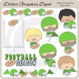 Questa collezione include giocatori di football con uniformi da calcio verdi e argento, caschi, palloni da calcio, gagliardetti "Go Team", un palo della porta con il pallone da calcio, la scritta "Stagione calcistica" e due bordi di calcio coordinati. Questo set contiene 10 grafici.