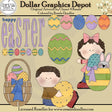Questa collezione comprende una bambina, con un bel fiocco, uova di Pasqua colorate e un simpatico coniglietto, un ragazzino con un uovo di Pasqua colorato, un cestino di Pasqua, pieno di uova colorate, un bordo per l'uovo di Pasqua, un uovo colorato, e una grafica word art "Buona Pasqua". I colori includono: rosa, viola, verde, blu, giallo, rosso, arancione e marrone. Questo set contiene 6 grafici.