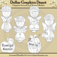 Questa collezione unica nel suo genere è disponibile solo presso Digital Craft Supplies. Questo set include quattro angeli del raccolto, che indossano graziosi vestiti e fiocchi abbinati, una foglia autunnale, zucche autunnali, un cesto di frutta, una mela con la scritta "Bountiful Harvest" scritta sopra e una zucca con un cartello di campagna che dice "Harvest". Tempo." Questo set esclusivo contiene 6 timbri digitali.