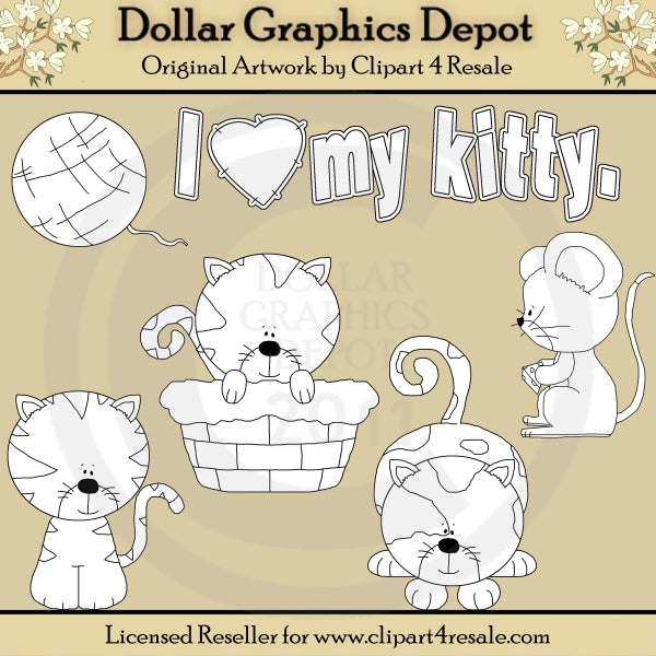 Questa collezione unica nel suo genere è disponibile solo presso Digital Craft Supplies. Questo set include un gattino a strisce, un gattino con toppe, un gattino a strisce, seduto in un cestino intrecciato, un simpatico topolino con in mano un pezzo di formaggio, un rocchetto di filo e una scritta "I Love My Kitty" grafica di parole artistiche. Questo set esclusivo contiene 6 timbri digitali.