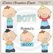 Questa collezione include quattro adorabili ragazzini, un ragazzino con la scritta "Momma's Boy" e una grafica con la scritta "Boys". Questo set contiene 6 grafici.
