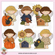 Questa collezione include adorabili angeli autunnali, con graziose ali d'angelo e abiti autunnali, zucche autunnali, corvi neri, foglie autunnali colorate, vasi di terracotta con graziosi girasoli e casette per gli uccelli dipinte. Questo set contiene 6 grafici.