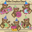 Questa collezione include sei orsetti celebrativi, cappelli colorati per le feste, un cartello per le feste con la scritta "Festeggia", un cartello per le feste con la scritta "Buon compleanno", regali incartati con graziosi fiocchi, un cupcake glassato con una candela e la scritta colorata "Festeggia" . Questo set contiene 6 grafici.