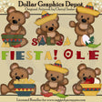 Questa collezione comprende sei adorabili orsetti, cappelli da festa, ciotole da festa dipinte, parole artistiche "Salsa", tortilla chips, salsa, peperoni, una cipolla, coriandolo, aglio, un pomodoro e due grafiche di parole artistiche: "Fiesta" e "Ole ." Questo set contiene 8 grafici.