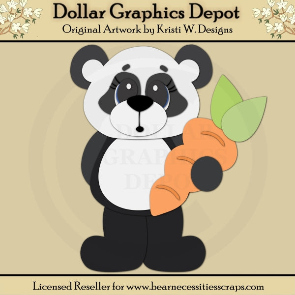 Questa collezione unica nel suo genere è disponibile solo presso Digital Craft Supplies. Questo set esclusivo include lime da taglio che possono essere utilizzate per creare questo adorabile progetto artigianale pasquale (mostrato "finito" in anteprima): un simpatico orsetto panda che tiene in mano una carota.