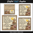 Questa collezione unica nel suo genere è disponibile solo presso Digital Craft Supplies. Questa collezione include un blocco di vetro standard stampabile (adatto a un blocco di vetro da 8" x 8"), un mini blocco di vetro stampabile (adatto a un blocco di vetro mini da 6" x 6"), una piastrella di ceramica stampabile (adatta a un blocco di vetro da 4" x 4") piastrelle di ceramica) e un topper per sacchetti di piastrelle di ceramica (ideale per esporre le piastrelle di ceramica decorate da 4" x 4" durante fiere dell'artigianato, mostre di artigianato e negozi di articoli da regalo). Queste immagini raffigurano graziosi orsetti montanari con cappelli, fionde, un banjo, un barile di legno, una brocca di legno di miele, graziosi fiori, una farfalla, una libellula, un sole e i "10 comandamenti montanari". Questo set esclusivo contiene 4 stampabili individuali e 4 pagine "Pronte per la stampa" (non mostrate nell'anteprima).