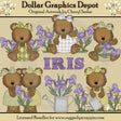Questa collezione unica nel suo genere è disponibile solo presso Digital Craft Supplies. Questo set include sei orsetti, che indossano graziosi vestiti e fiocchi abbinati, in verde, bianco e viola, bellissimi fiori di iris, annaffiatoi, staccionate e una grafica word art "Iris". Questo set esclusivo contiene 7 grafiche.