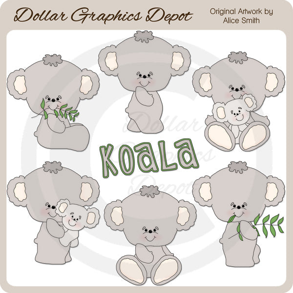 Questa collezione unica nel suo genere è disponibile solo presso Digital Craft Supplies. Questo set include adorabili orsetti koala, cuccioli di orsetti koala, rami di eucalipto e una grafica word art "Koala". Questo set esclusivo contiene 7 grafiche.