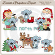 Questa collezione include adorabili koala natalizi, Babbo Natale, un simpatico elfo, martelli per costruire giocattoli, un orsacchiotto di peluche, caramelle alla menta piperita, un trenino giocattolo choo-choo, una bambolina, un albero di Natale decorato, una calza piena di caramelle bastoncini di zucchero, una serie di luci natalizie, neve, un cartello di legno con la scritta: "Polo Nord", una renna, pattini da ghiaccio, un bastoncino di zucchero, un omino di pan di zenzero e una grafica word art "Il Polo Nord". Questo set contiene 7 grafici.