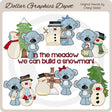 Questa collezione include adorabili koala invernali con graziosi fiocchi, graziosi pupazzi di neve, neve, un cartello in legno con la scritta: "Polo Nord", pini innevati, tazze di caffè caldo/cacao e un cartello con la scritta "In The Meadow We Can Build A". Pupazzo di neve" grafica word art. Questo set contiene 7 grafici.