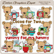 Questa collezione unica nel suo genere è disponibile solo presso Digital Craft Supplies. Questo set include nove adorabili orsetti con tazze di cacao natalizie dipinte: Babbo Natale, la signora Claus, una signora di pan di zenzero, una renna, uno schiaccianoci, un elfo e graziosi pois, cioccolata calda con tanta panna montata e confettini colorati, bastoncini di zucchero , biscotti natalizi glassati, caramelle alla menta piperita, mini pupazzi di neve, rami di bacche di agrifoglio, biscotti di pan di zenzero, un pacchetto di cacao natalizio, agitatori per bastoncini di zucchero e due grafiche word art: "Cocoa For Two" e "Yummy For My Tummy". Questo set esclusivo contiene 11 grafiche.
