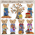 Questa collezione comprende sette orsi autunnali, che indossano tute e magliette, foglie autunnali colorate, rastrelli, un grazioso albero autunnale, un cesto pieno di girasoli, un cesto pieno di mele rosse, una bella pianta di girasole, una ciotola dipinta piena di frutti autunnali , zucche, zucche, mele rosse e mais indiano. Questo set contiene 7 grafici.