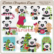 Questa collezione include adorabili orsetti panda natalizi, bastoncini di zucchero a strisce, una calza di Natale con un ramo di bacche di agrifoglio e un omino di pan di zenzero, biscotti natalizi glassati, un bicchiere di latte, un barattolo di biscotti pieno di biscotti natalizi, un omino di pan di zenzero, una signora di pan di zenzero, un pacchetto di miscela di cioccolata calda, una tazza di cioccolata calda, un simpatico orsacchiotto, un albero di Natale decorato, regali di Natale incartati, una cornice di panda, un'etichetta regalo panda e una grafica word art "Buon Natale". Questo set contiene 10 grafici.