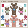 Questa collezione include due Papa Bears, due maschietti, due femmine, due cravatte, un biglietto "Papà", un biglietto "Papà", una tazza "Papà", una tazza "Papà", un nastro premio "Miglior papà", e un nastro premio "Miglior papà". Questo set contiene 14 grafici.