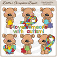 Questa collezione comprende sei adorabili orsetti di peluche, nastri multicolori per la consapevolezza dell'autismo, pezzi di puzzle colorati, un puzzle a forma di cuore e una grafica word art "I Love Someone With Autism". Questo set contiene 7 grafici.