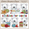 Questa collezione comprende sei adorabili orsetti polari, biscotti natalizi glassati, un omino di pan di zenzero, una bottiglia di estratto di vaniglia, un barattolo di confettini colorati, una ciotola con pasta per biscotti e un cucchiaio, un mattarello, un sacchetto di farina e uno Grafica word art "Cookies For Santa". Questo set contiene 7 grafici.