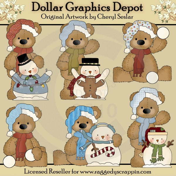 Ecco alcuni esempi di cosa puoi creare utilizzando la grafica "Stuffed Bears - Winter":