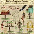 Questa collezione comprende tre tradizionali casette per gli uccelli in rosso e oro, marrone chiaro e verde, verde, acqua e marrone, una casetta per uccelli americana, con strisce beige e rosse e una piccola bandiera americana sulla parte superiore, una casetta per uccelli in ciottoli in marrone, marrone chiaro e kaki. , una casetta per gli uccelli ad alveare, in giallo e marrone, macchie d'erba, alberi, rami di vite, fiori gialli, un grazioso salice piangente, una bandiera americana, un corvo nero, uno sfondo di salice abbinato e una scritta "American Nest" grafico. Questo set contiene 11 grafici.