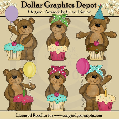 Prezzo normale $1.38 USDPrezzo unitario /Non disponibileOrsi della torta di compleanno - ClipArt - Esclusiva DCS