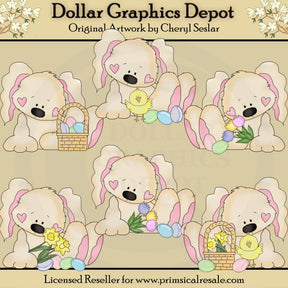 Questa collezione comprende sei adorabili coniglietti pasquali dalle orecchie flosce, cestini pasquali, uova di Pasqua colorate, graziosi narcisi, tulipani colorati e graziosi pulcini pasquali. Questo set contiene 6 grafici.