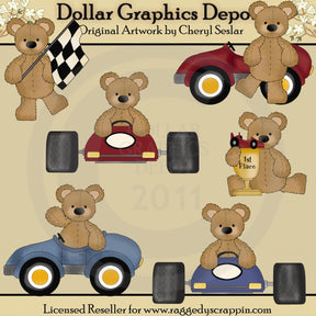 Ecco alcuni esempi di cosa puoi creare utilizzando la grafica "Stuffed Bears - Race Cars":