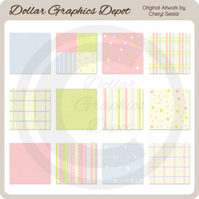 Questa collezione comprende dodici piastrelle di sfondo per parfait per bambini, con motivi scozzesi, a righe, a scacchi, patchwork, floreali e a pois. Questo set contiene 12 elementi grafici per piastrelle di sfondo.