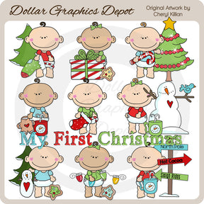 Questa collezione unica nel suo genere è disponibile solo presso Digital Craft Supplies. Questo set include nove adorabili bambini di Natale, che indossano pannolini e magliette, con alberi di pino, calze di Natale, bastoncini di zucchero, un regalo di Natale incartato, biscotti di Natale glassati, un albero di Natale decorato, un omino di pan di zenzero, tazze di pupazzo di neve piene di cioccolata calda, un pupazzo di neve con un uccellino blu, un mini pupazzo di neve, una serie di luci natalizie, un cartello festivo con le scritte "Polo Nord", "Cacao caldo" e "Gite in slitta" e un'immagine grafica "Il mio primo Natale" . Questo set esclusivo contiene 10 grafiche.