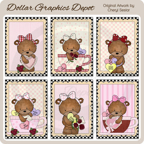 Questa collezione comprende sei biglietti da 5x7 sul davanti con teneri orsetti, graziosi fiocchi per capelli, tazze da tè e piattini dipinti, rose rosse, un cuore di San Valentino cucito, cuori di conversazione, biglietti di San Valentino in buste e un cuore di San Valentino smerlato con nastro. I modelli includono: a pois, a scacchi, a quadretti e a righe. Questo set contiene 6 carte.