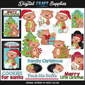 Questa vasta collezione comprende sei adorabili orsetti di Natale con biscotti natalizi glassati, un bicchiere di latte per Babbo Natale, un simpatico pupazzo di neve, un ramo di bacche di agrifoglio, un regalo di Natale incartato con un grazioso fiocco, un omino di pan di zenzero, alberi di Natale decorati, un bastoncino di zucchero e una piccola renna, insieme a due biglietti di auguri coordinati, tre etichette regalo coordinate e due etichette coordinate. Questo set contiene 18 pezzi (11 grafica e 7 stampabili).