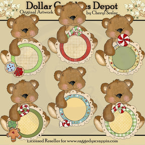Questa collezione include sei adorabili orsetti di Natale, biscotti natalizi glassati, bastoncini di zucchero a strisce, un lecca-lecca alla menta piperita, una caramella alla menta piperita, un omino di pan di zenzero e graziose cornici natalizie, da personalizzare. Questo set contiene 6 grafici.