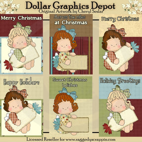 Questa collezione include sei cartoline di Natale 5x7 sul davanti, con dolci bambine che indossano graziosi abiti natalizi e fiocchi per capelli abbinati, ciascuno con un'etichetta regalo di Natale, pronta per essere personalizzata. Queste carte includono le seguenti parole artistiche: "Buon Natale", "Buone vacanze", "Auguri di vacanze", "Dolci auguri di Natale" e "Across The Miles At Christmas". Questo set contiene 6 carte.