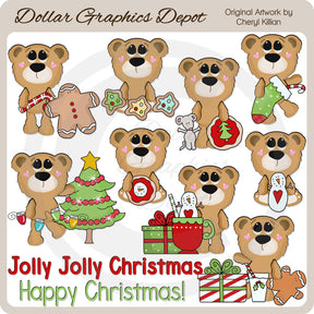 Questa collezione unica nel suo genere è disponibile solo presso Digital Craft Supplies. Questo set include adorabili orsetti di Natale, bastoncini di zucchero, omini di pan di zenzero, biscotti di Natale glassati, un simpatico topolino, una calza di Natale, un filo di luci di Natale, un albero di Natale decorato, regali di Natale incartati, una tazza di cioccolata calda con un mini pupazzo di neve marshmallow e agitatore per bastoncini di zucchero, un piccolo pupazzo di neve, un bicchiere di latte e due grafica word art natalizia: "Jolly Jolly Christmas" e "Happy Christmas". Questo set esclusivo contiene 11 grafiche.