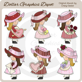 Questa collezione unica nel suo genere è disponibile solo presso Digital Craft Supplies. Questo set include sei adorabili bambine, che indossano graziosi vestiti e cappelli a pois, scozzesi, a quadretti e a righe, in rosa, bianco, rosso e marrone chiaro, cuori di conversazione, San Valentino a forma di cuore, una busta con adesivo a cuore e graziosi fiori rossi . Questo set esclusivo contiene 6 grafiche.