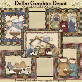 Questa collezione include quattro stravaganti biglietti per presepe da 4,25 x 5,5 pollici e un bizzarro biglietto di auguri per presepe da 5 x 7 pollici (scena completa), con bordi e accenti a quadretti, patchwork, neve, strisce, percalle, bottoni e rami di agrifoglio. . Questo set contiene 5 carte.