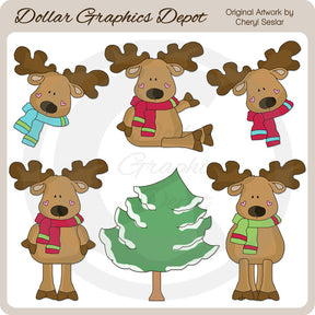 Questa collezione include adorabili alci invernali con comode sciarpe e un pino innevato. Questo set contiene 6 grafici.