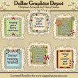 Questa collezione include sei cornici per doodle di sentimenti natalizi: una con caramelle alla menta piperita e la scritta "Wishing You A Merry Christmas", una con una serie di luci natalizie e la scritta "Twas The Night Before Christmas", una con un omino di pan di zenzero, un Biscotto di Natale, un bastoncino di zucchero a strisce e la scritta "Vi auguriamo buon Natale e felice anno nuovo", una con rami di bacche di pino, una caramella alla menta piperita e la scritta "Dolci auguri di vacanze", una con un bastoncino di zucchero, un lecca-lecca alla menta piperita e la scritta "Auguri di buone feste" e una con un bastoncino di zucchero e la scritta "Notizie di conforto e gioia". Questo set contiene 6 grafici.