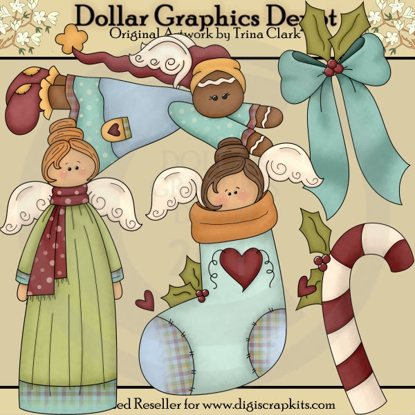 Questa collezione include un angelo di pan di zenzero, con un bel vestito, cappello invernale e ali d'angelo smerlate, un angelo con un bel vestito, sciarpa invernale e ali d'angelo smerlate, un angelo con ali smerlate, che fa capolino da una bellissima calza di Natale, un grazioso fiocco natalizio con foglia di bacca di agrifoglio e un bastoncino di zucchero a strisce con foglia di bacca di agrifoglio. Questo set contiene 5 grafici.