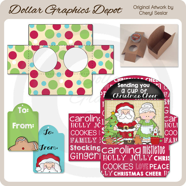 Questa collezione include tutto il necessario per creare un adorabile portacialde natalizio: un lato della scatola con scritte natalizie, Babbo Natale, la signora Claus, un albero di Natale decorato, un regalo di Natale incartato con un grazioso fiocco, omini di pan di zenzero, una tazza di caffè caldo cacao con un mini pupazzo di neve e agitatore per bastoncini di zucchero e un cartello sulla lavagna che dice: "Ti invio una tazza di allegria natalizia" (stampato due volte), un inserto in una scatola a pois (contiene due cialde di caffè individuali) e due etichette regalo coordinate - un omino di pan di zenzero e Babbo Natale. NOTA BENE: questo portacialde è adatto alle cialde K-Cup™. Questo set contiene 4 stampabili.
