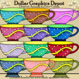 Ecco alcuni esempi di cosa puoi creare utilizzando la grafica "Tazze da tè colorate":
