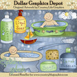 Questa collezione include un bambino/bambino seduto in una vasca da bagno con tante bollicine, un bambino/bambino seduto in una piscina per bambini con un pezzo di erba, nuvole gonfie e il sole, una bottiglia di shampoo, una pompa per sapone liquido, una barca a vela nell'acqua, una spazzola da bagno, una spugna di luffa, una saponetta, una bottiglia di bagnoschiuma, una carta di sfondo con bolle e una grafica word art "Splish N' Splash". Questo set contiene 11 grafici.