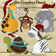 Questa raccolta include cinque adorabili animali della giungla invernale: una giraffa, una scimmia, un elefante, una tartaruga e una zebra, cappelli di Babbo Natale, sciarpe invernali, un bastoncino di zucchero e neve (la neve è duplicata nell'anteprima). Questo set contiene 6 grafiche.