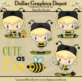 Questa collezione include quattro adorabili ragazze calabroni, macchie d'erba, graziosi fiori, una coccinella, un alveare e una grafica word art "Carino come può un'ape". Questo set contiene 5 grafici.