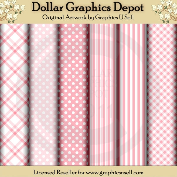 Questa collezione comprende sei carte color pastello da 12 "x 12". I modelli includono: plaid, pois, strisce e percalle. I colori includono: rosa e bianco. Questo set contiene 6 fogli di scarto.