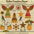 Questa collezione comprende due angeli autunnali e una ragazza autunnale, che indossano graziosi abiti in arancione, verde, marrone e rosso, con bellissime ali di foglie colorate autunnali, due corvi neri con una stella e un girasole, una ghirlanda di stelle colorata, una zucca ornamentale appesa con un cartello di campagna con la scritta "Autunno", un grazioso girasole con foglie dei colori autunnali, una stella con un cartello di campagna con la scritta "Buon autunno" e un festone a stella con foglie di colori autunnali, un corvo nero e una zucca. Questo set contiene 10 grafici.