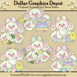 Questa collezione comprende sei adorabili coniglietti, graziosi fiocchi per capelli a quadretti e a pois, uova di Pasqua colorate, caramelle gommose, graziosi fiori di tulipano, ciotole pasquali dipinte con graziosi fiocchi e graziosi pulcini. I colori includono: rosa, blu, verde, giallo, viola, bianco e nero. Questo set contiene 6 grafici.
